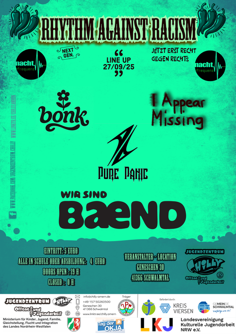 Im Rahmen der langen Nacht der Jugendkultur, haben wir ein Pfund an coolen Bands nach Schwalmtal geholt und freuen uns riesig auf einen rockigen Abend mit viel guter Laune.